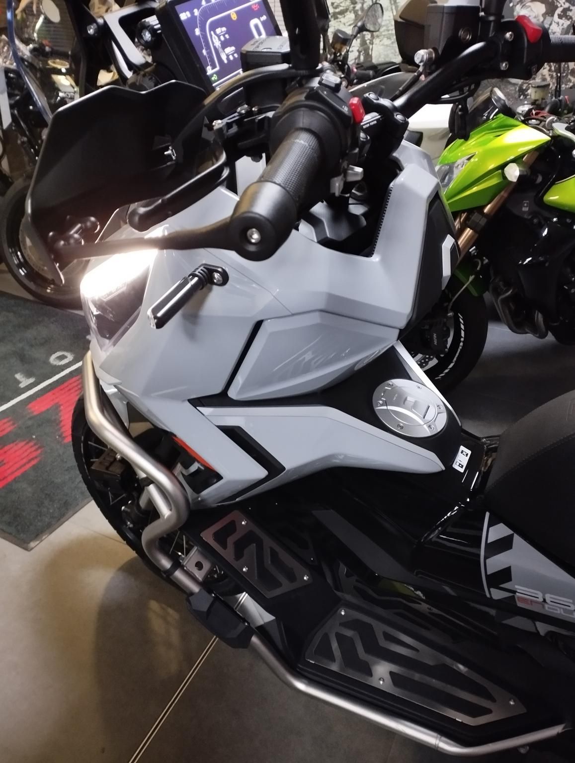 | Leírás: | Utolsó készleten lévő motor (fekete színű), a következő beérkésig ! ( kb 2026. Június) Zontes 368G Enduro Scooter a robogózás új dimenziója, egy egyedülálló felszereltségű kategóriateremtő Endruro-robogóban! Nagy 8-os színes TNT műszerfal, 17-os peremfűzött küllős első kerék, 41mm-es teleszkópok 154 mm-es rugóúttal, 2 nagyméretű sisak befogadására alkalmas sisaktartó, USB + USB -C töltő a kormánynál, és az ülés alatt is, bukócső, ködlámpa, elől-hátul Sony menetrögzítő kamera, ami az ingyenesen letölthető appból is elérhető!, telefontükrözés, keréknyomás és hőmérséklet kijelzés, automatikus szürkületérzékelő, Bluetooth vezérlés, 2db óraként is hordható okoskulcs, 3 fokozatban állítható markolatfűtés, ülésfűtés, tempomat, elektromos gázkar, 6 fokozatban állítható plexi, kétcsatornás Bosh ABS, 3 év GARANCIÁVAL ! hitelre is! Elérhető színek: világos szürke, fekete, zöld, homokbarna, |
